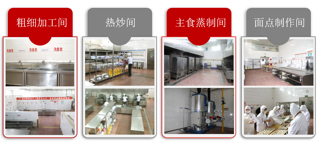 圣禾餐饮拥有6000多平方米的生产配送基地,采用中央厨房生产化作业,设有机械化粗细加工车间、配餐分装生产线、餐具洗消线、冷冻、保鲜库房、以及专业化较强的食品加工布局和生产工艺流程。